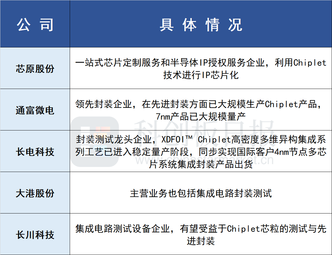 据《科创板日报》不完全统计,A股Chiplet相关公司包括: